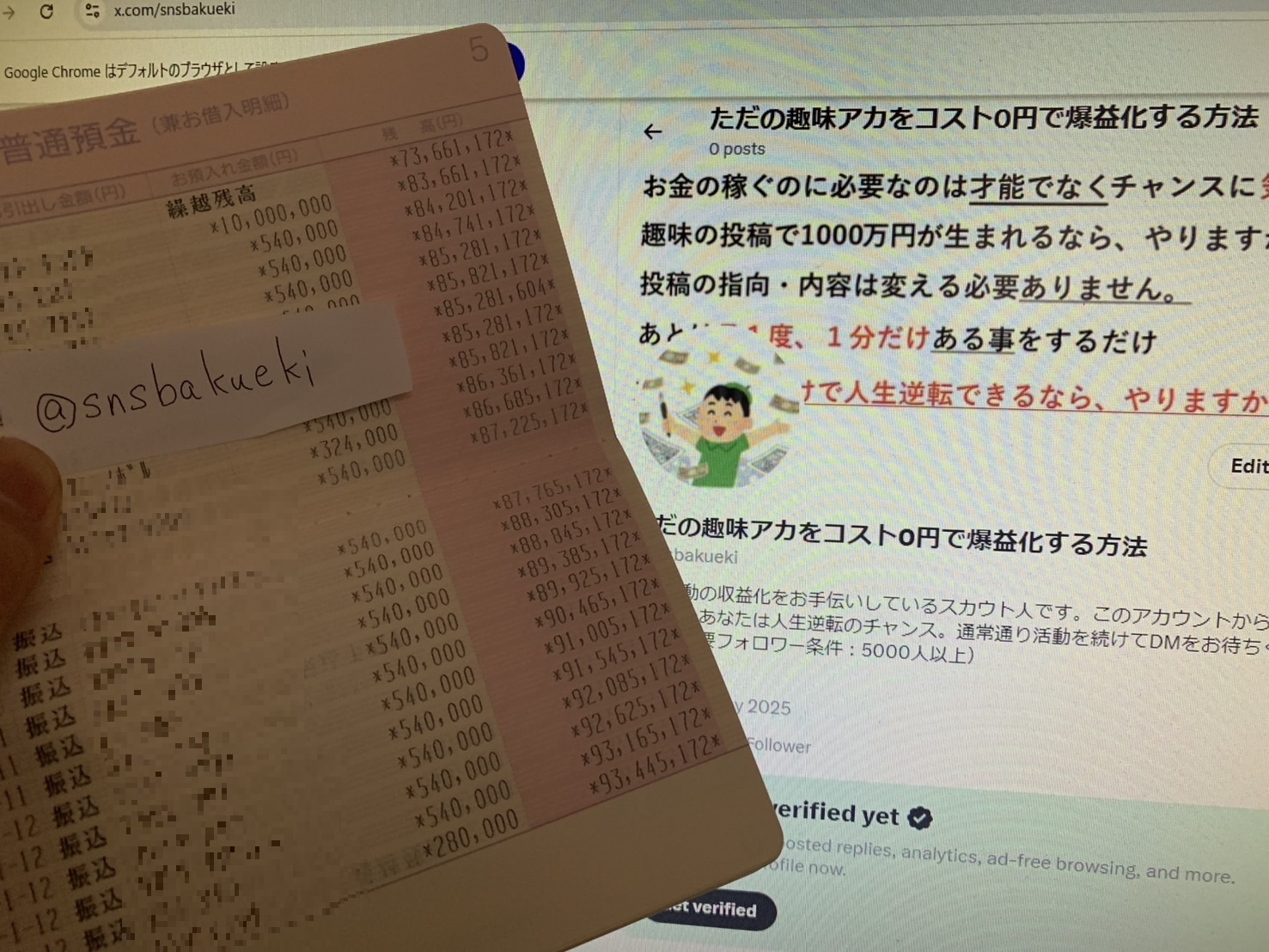 本来は1名ずつDMでやりとりをしておりましたが、毎回同じ文章を打つ事や無視される事、Xアカウント自体が凍結してしまう事に心が折れてしまったため、こちらに情報を掲載する事にしました。